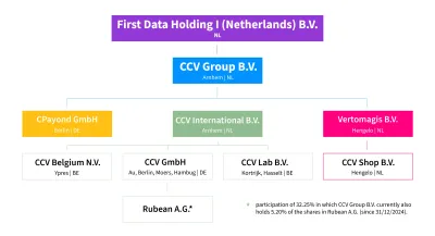 CCV Group B.V. is onze moedermaatschappij, waarbij verschillende Europese dochterondernemingen zijn ondergebracht. In het organogram zie je onze juridische structuur en de relatie tussen de dochterondernemingen.